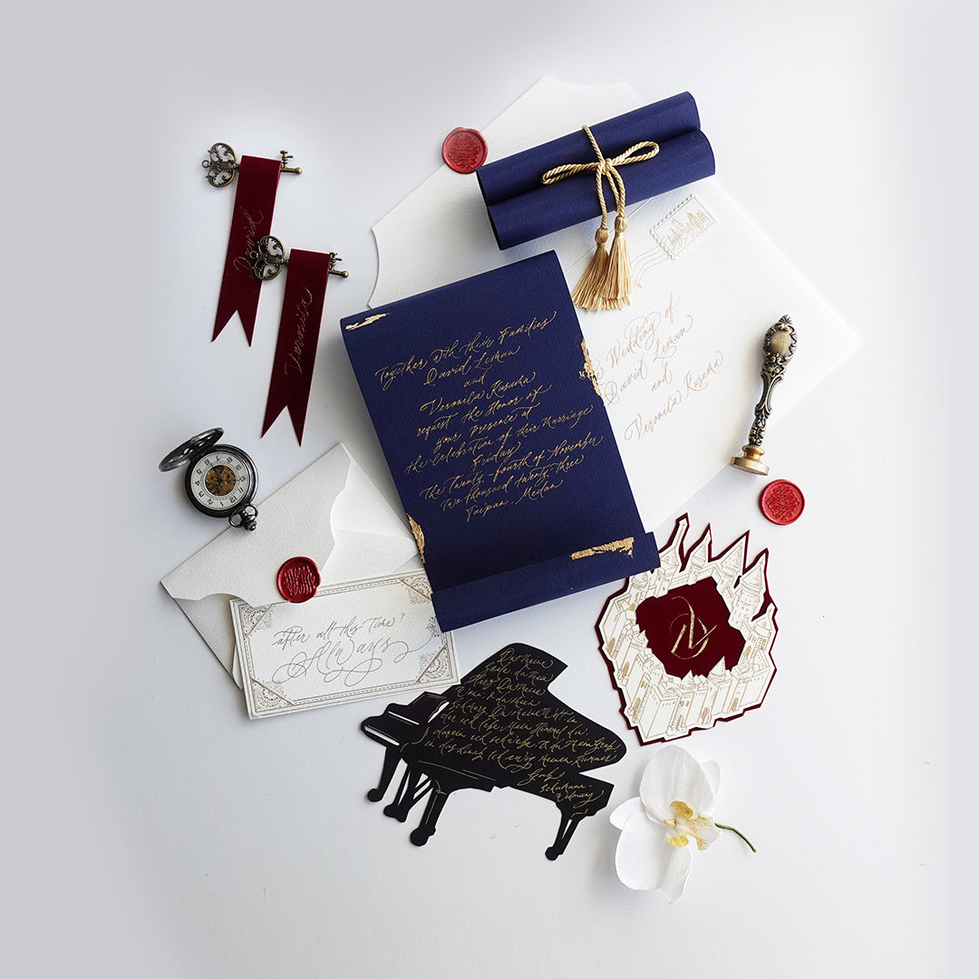 Our exquisite handmade invitation suite, meticulously crafted with the finest luxury materials, including acrylic, leather, and velvet. This opulent collection is designed to captivate and impress, setting the tone for an unforgettable event. To complete the ensemble, each invitation is personalized with elegant typography and bespoke embellishments. There will be no revision for the final artwork.